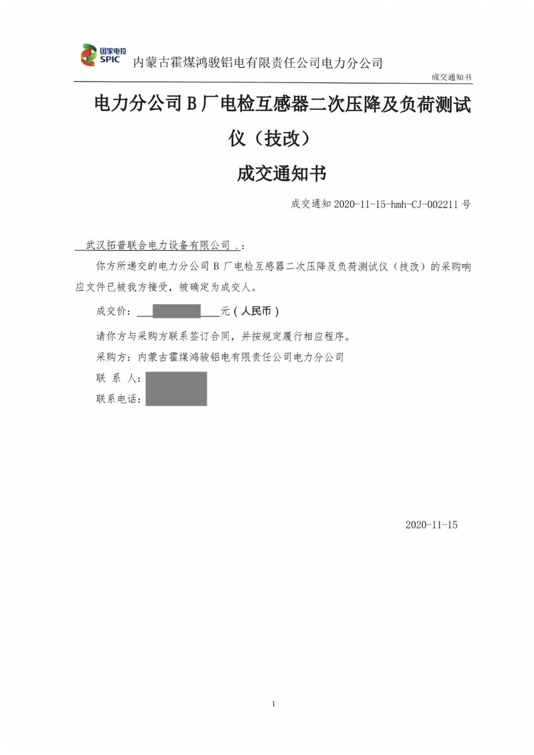 中標內(nèi)蒙古霍煤鴻駿鋁電有限責任公司電力分公司采購項目